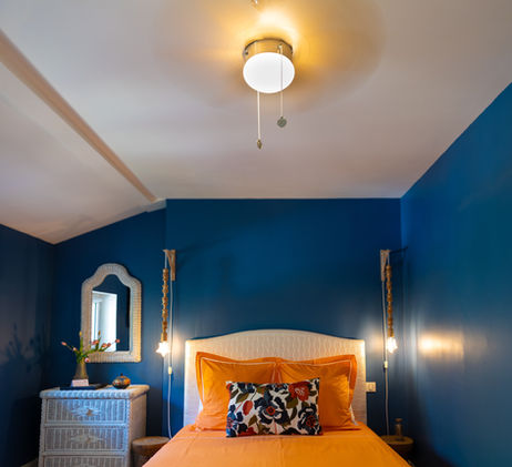 La Chambre Bleue ou Chambre 199 se situe au deuxième étage de la maison. Son épaisse moquette est son atout douceur. Un cocon bleu pour une nuit plus près des étoiles. Salle de bain avec baignoire Les petits déjeuner sont compris.